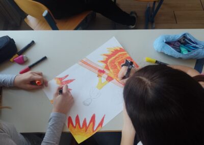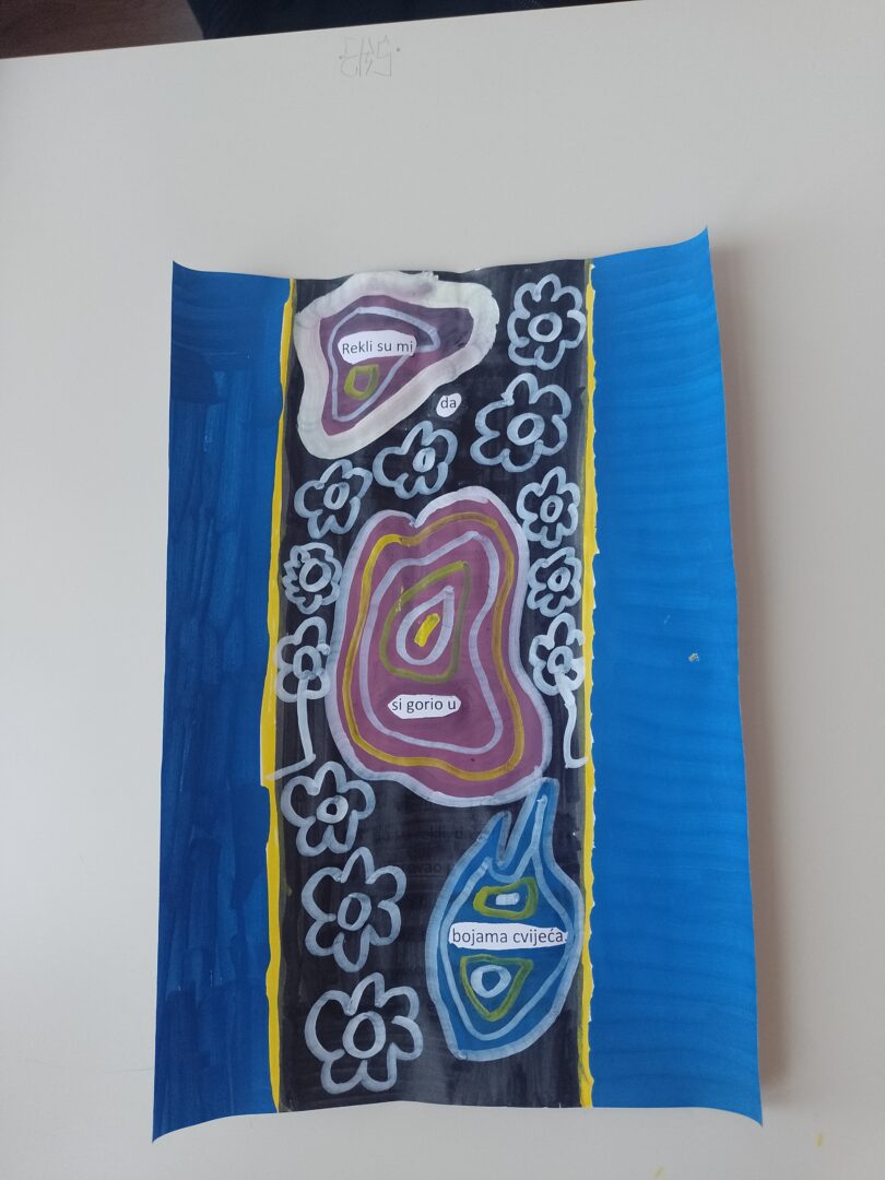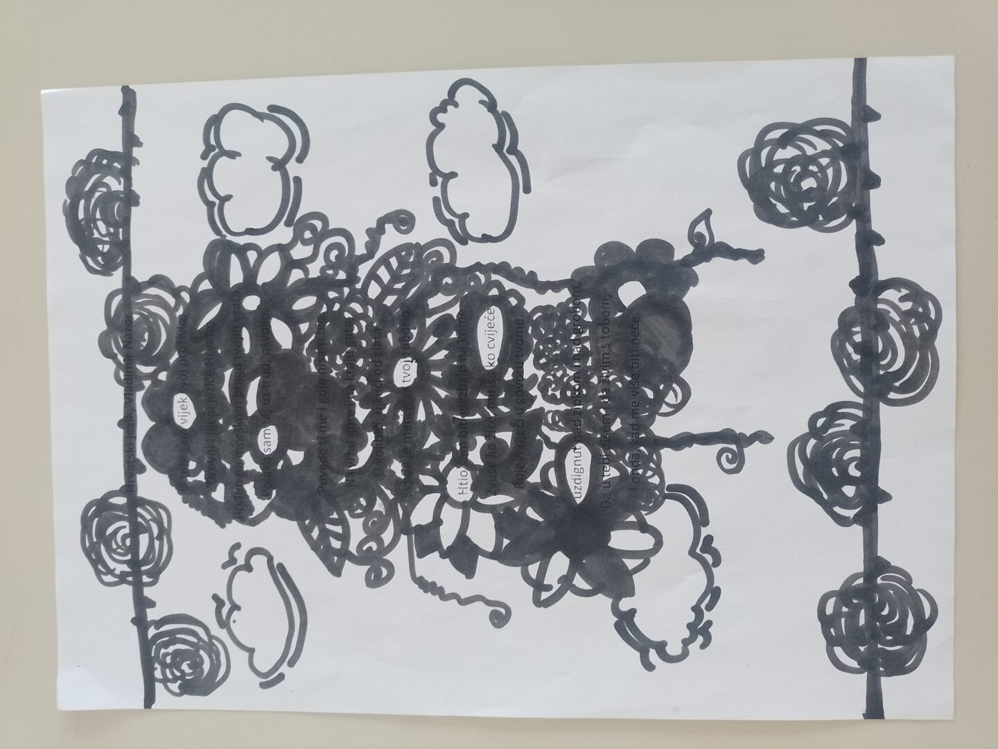 17. ožujka obilježili smo Mjesec hrvatskoga jezika u 6. a razredu radionicom blackout poezije. Učiteljica hrvatskoga jezika Ana Matić Zagorac i knjižničarka Marija Malnar Zidarić odabrale su prigodne pjesme na temu hrvatskoga jezika (Hrvatski jezik, V. Nazor, Moj hrvatski P. Kanižaj, Razgovor s duhom hrvatskoga jezika Z. Bartoli) koje su učenici trebali reciklirati i stvoriti posve nove vizualne i jezične strukture. Na zanimljiv i drugačiji način imali su priliku vidjeti kako se možemo pozabaviti zadanim jezičnim strukturama i postati pravi pjesnici.