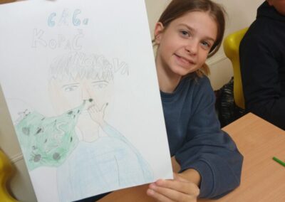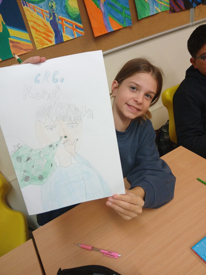 Odabrali smo, stoga u Mjesecu hrvatske knjige, ugostiti spisateljicu kako bismo uživo čuli kakav je osjećaj dobiti tako vrijednu nagradu. Autorica nas je posjetila 21. listopada, točnije naš 5. b razred, koji je iz prve ruke mogao čuti o autoričinu stvaranju slikovnice, kao i o njenim brojnim stvarnim putovanjima koja su i poslužila kao početna inspiracija pisanju. Na koncu, i sami su se učenici okušali u stvaralačkim vodama te u kreativnome dijelu susreta pokušali izraditi naslovnicu svoje potencijalne knjige. Tko zna, možda se i među našim petašima skriva budući pisac.
