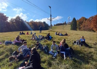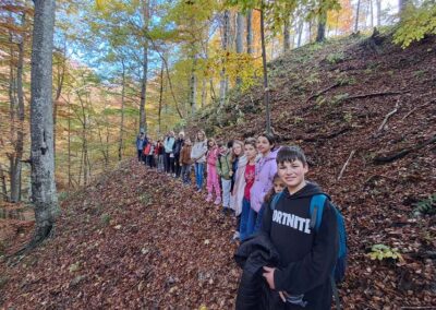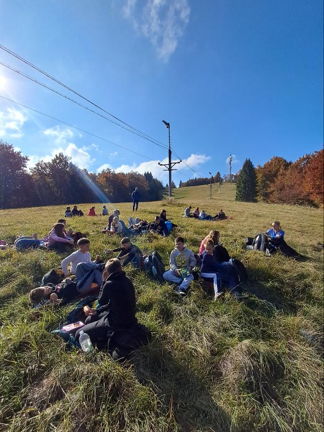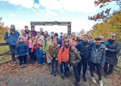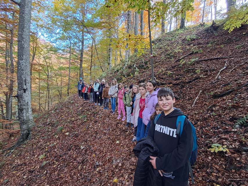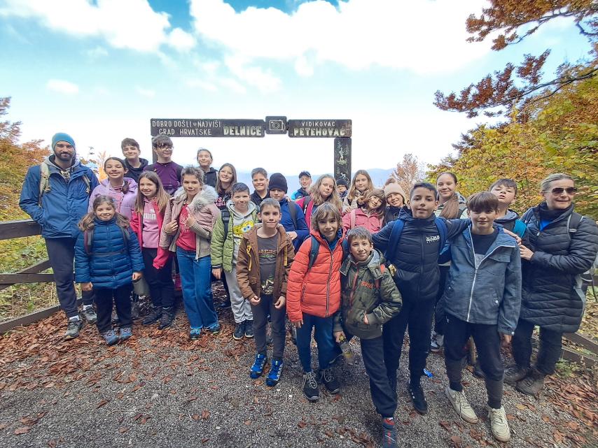 Predivan jesenski dan mali planinari proveli su na planinarskoj stazi na Petehovcu pokraj Delnica. Planinarskim putem došli su do skijaške staze na Petehovcu i zatim do Štimčevog vrha (1024 m). Obišli su Jagodinu stijenu i saznali da naziv nosi po djevojci Jagodi koja se tu sastajala sa svojim zaručnikom. Vrijeme odmora proveli su igrajući se i istražujući biljni i životinjski svijet livada na Petehovcu. U Delnice su se spustili planinarskom stazom s druge strane planine uživajući u mirisima i bojama jeseni. Prije polaska vlaka prošetali su središtem Delnica i posjetili
