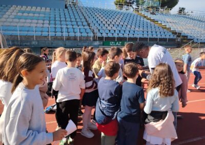 U tjednu koji je iza nas (6. 10. – 10. 10.), učenici i učitelji razredne nastave imali su projektni tjedan pod nazivom NK Rijeka i mi. Tijekom tjedna učenici raznim aktivnostima upoznavali bogatu povijest kluba i važnost sporta u životu zajednice. Učenici 3.a i 3.b razreda u ponedjeljak su posjetili stadion Kantrida, te naučili o povijesti našega najljepšeg dragulja smještenog u samim stijenama, tik uz Jadransko more. Tijekom utorka i srijede  cijela razredna nastava posjetila je nogometni kamp Rujevica gdje su imali prilike vidjeti sve prostorije kluba, svlačionice i na kraju glavni teren, kao i pomoćni na kojem  su uživali u raznim aktivnostima. Učenici koji nisu imali članske iskaznice, dobili su svoje, ali ni mi nismo došli praznih ruku jer smo u suradnji s našom Zadrugom odnijeli znak pažnje koji smo izradili na 3D printeru kao