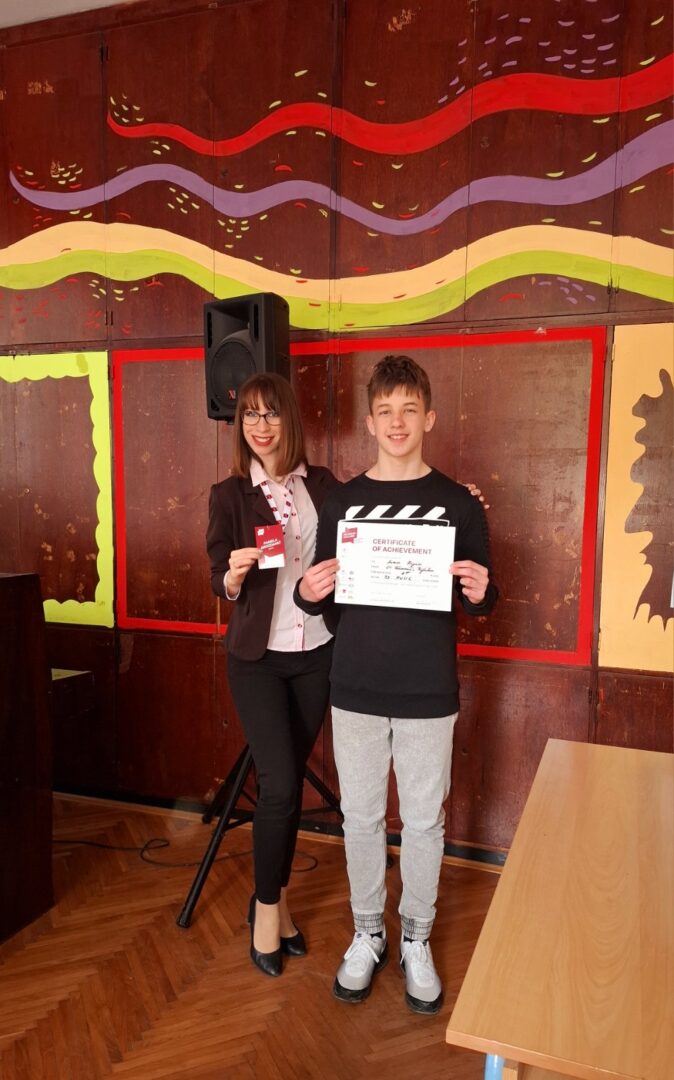 Ivan Pejin (8. a) (mentorica Pamela Grozdanić) osvojio je prvo mjesto u kategoriji osnovnih škola te